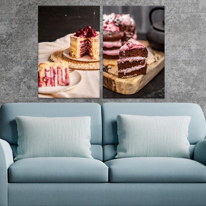 Conjunto de 2 Telas Decorativas em Tecido Canvas Bolo Confeitado Impressão UV HD-60x90