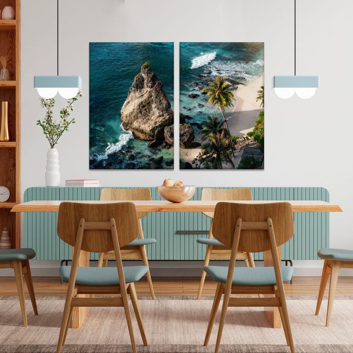 Sua casa de praia merece uma decoração dessas, Rocha a beira mar imagem muito bonita dividada em duas telas decorativas. Confeccionado com tecido canvas esticado em chassi de madeira.