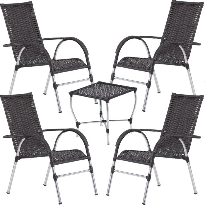 Conjunto de 4 Cadeiras e Mesa de Centro para Área Externa Resistente a Chuva e Sol Trama Original Preto