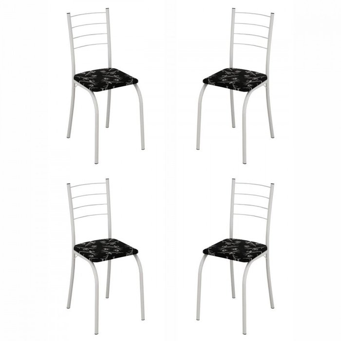 Conjunto de 4 Cadeiras Rio Liso Branco Assento Preto Lirio Teixeira Branco/Preto