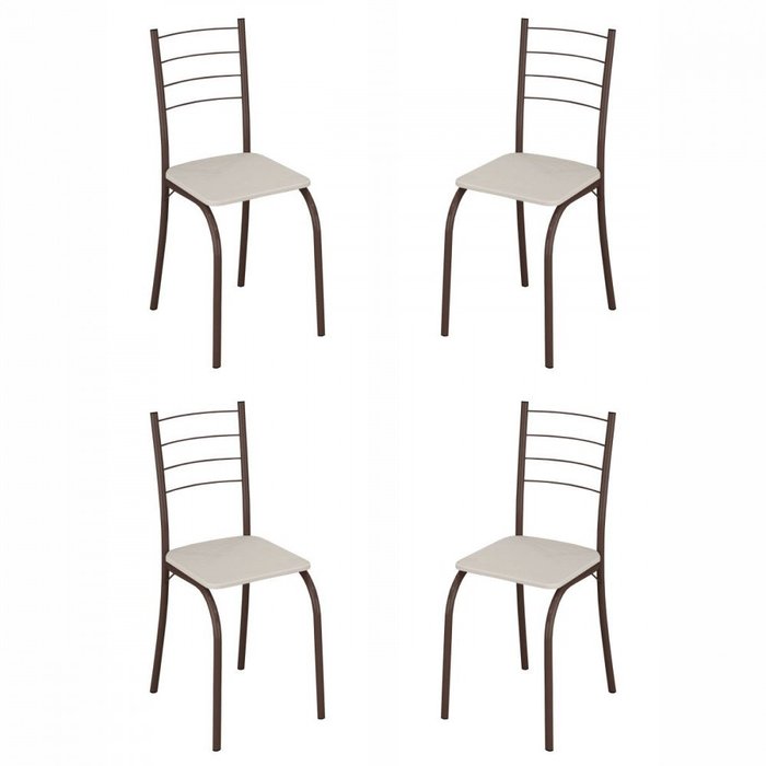 Conjunto de 4 Cadeiras Rio Marrom Assento Creme Teixeira