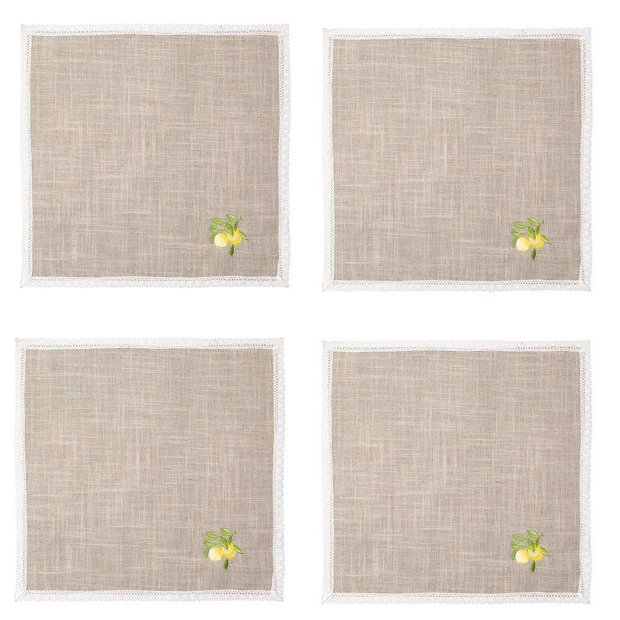 Conjunto de 4 Guardanapos Limao Siciliano 45 X 45 com Renda Rafimex Bege