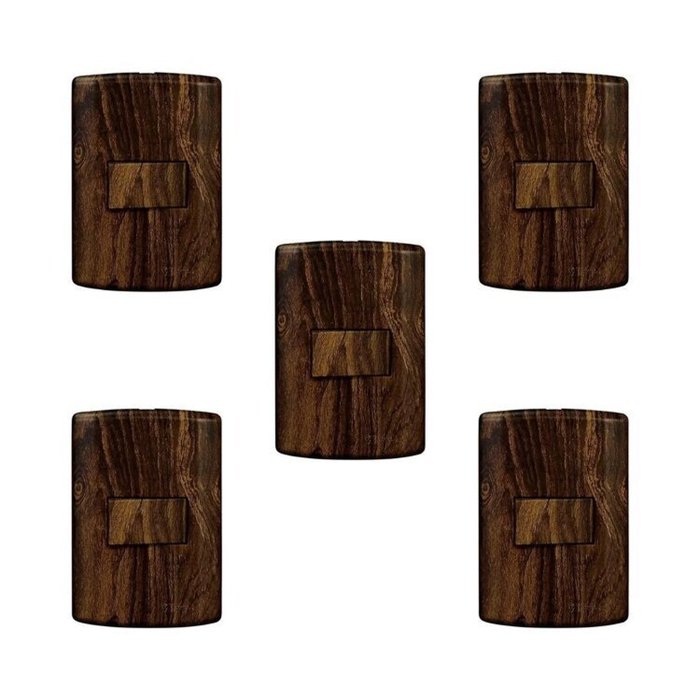 Conjunto de 5 Interruptores de 1 Tecla Simples, Modular, com Placa 4x2 e Suporte Marrom