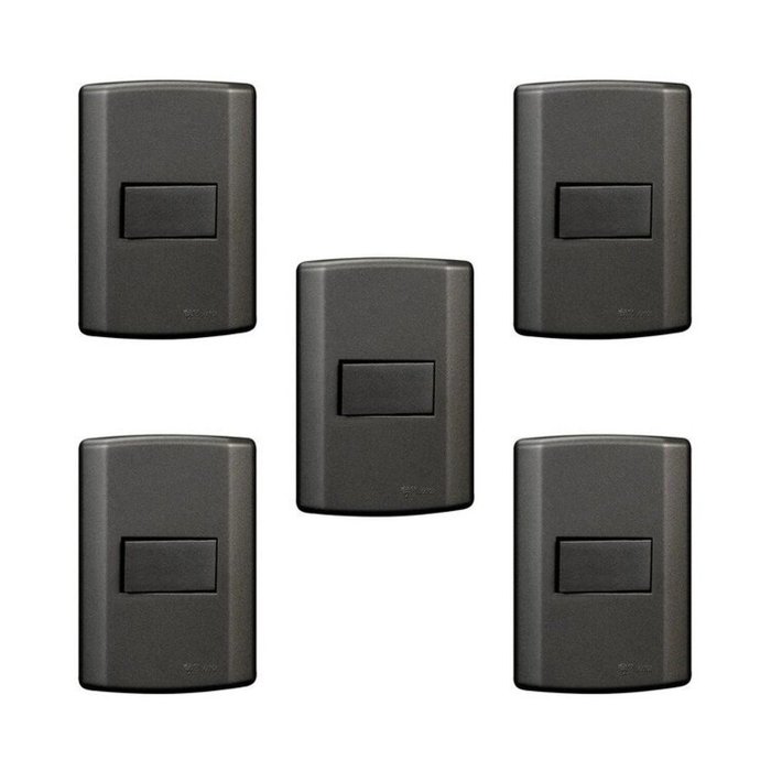 Conjunto de 5 Interruptores de 1 Tecla Simples, Modular, com Placa 4x2 e Suporte Cinza