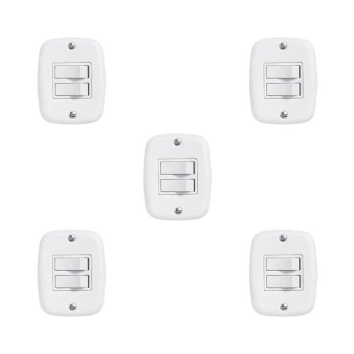 Conjunto de 5 Interruptores de 2 Teclas Simples com Placa de Sobrepor Branco