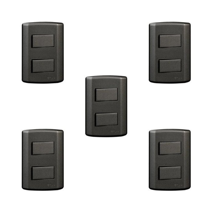 Conjunto de 5 Interruptores de 2 Teclas Simples, Modular, com Placa 4x2 e Suporte Cinza
