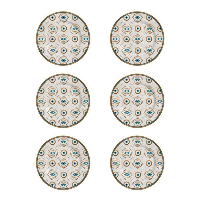 | Nome do desenho | Conjunto de 6 pratos raso olho grego alleanza branco e azul |