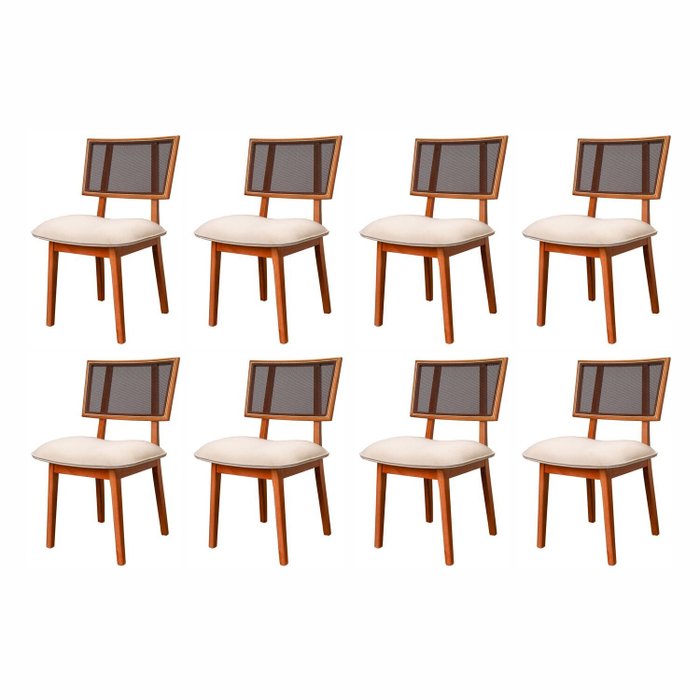 Conjunto de 8 Cadeiras em Madeira Maciça, com Fibra e Estofada Lívia Authentic