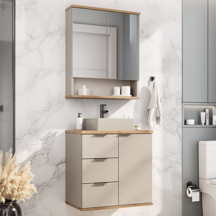 Conjunto de Banheiro Aqua 56,7cm Estilare Cnj4005 Nude/carvalho