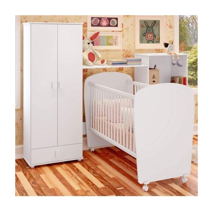 Conjunto de Bebê Sonho Mágico com Guarda Roupa 2 Portas, Cômoda e Berço Espresso Móveis branco