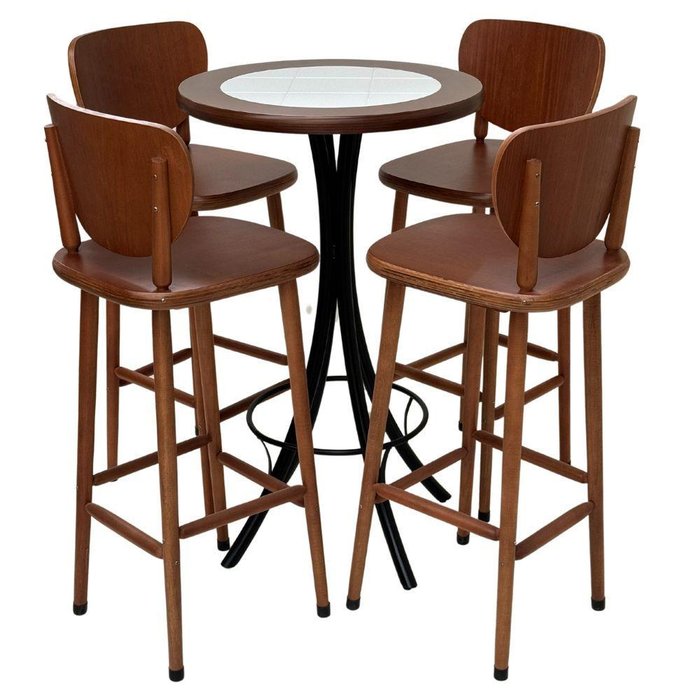 Conjunto de Bistrô Mosaico Branco com 4 Banquetas Dg Móveis Cor da Madeira Imbuia