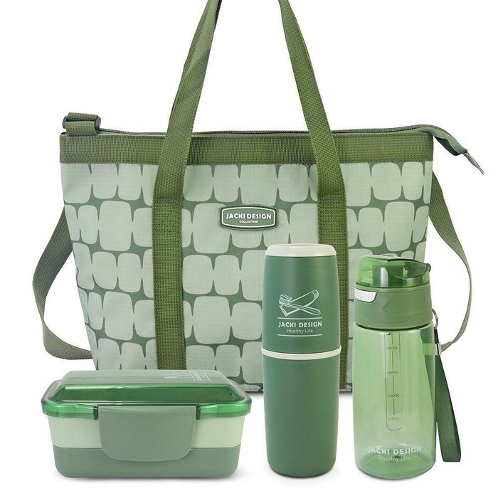 Conjunto De Bolsa Térmica Com Pote De Marmita, Porta Escova E Pasta De Dente E Garrafa 500ml Verde