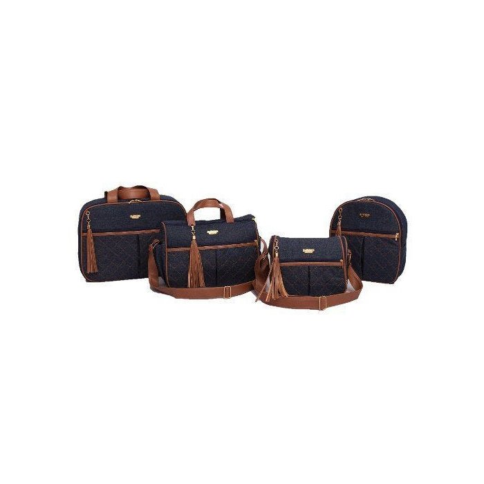 Conjunto de bolsas maternidade - Art Denim Jeans 3 - Azul-petróleo Azul-petróleo
