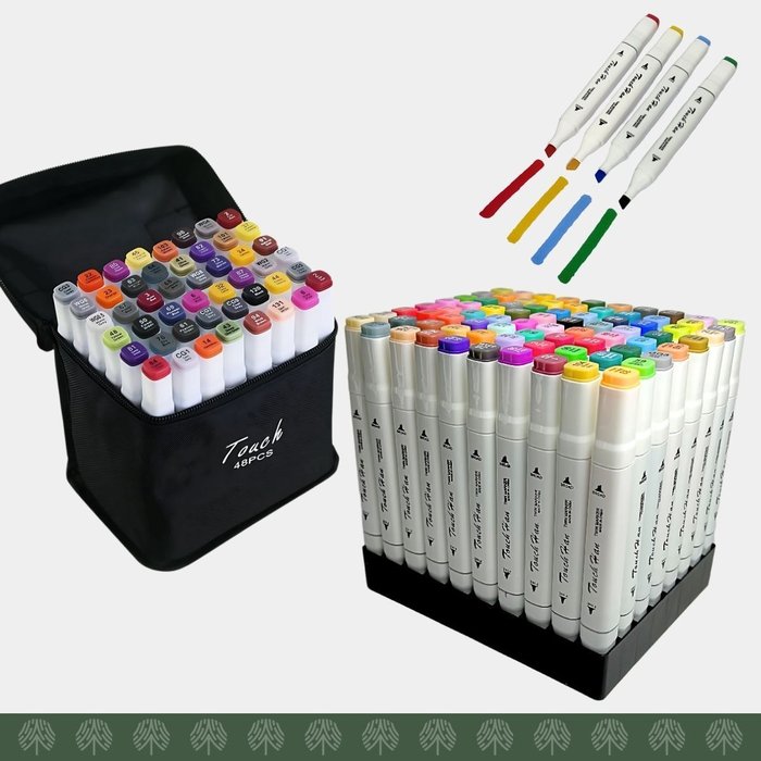 Organização Prática: As tampas codificadas por cores facilitam a identificação rápida das canetas. O design ergonômico garante conforto durante o uso prolongado, ideal para sessões longas de criação.