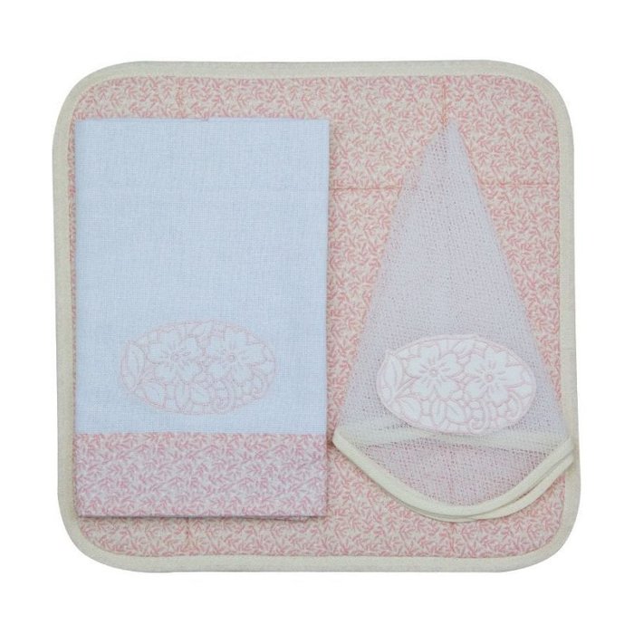 Conjunto de cesto, filó e pano de prato - Rosa