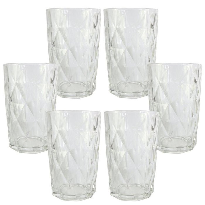Perfeito para transformar suas refeições em momentos especiais, este conjunto com 6 copos contam com um design sofisticado e um acabamento brilhante, perfeitos para qualquer ocasião, trazendo um toque de estilo e elegância para a sua mesa. Design inspirado na beleza dos diamantes, faz com que cada copo possua um acabamento deslumbrante, criando um visual sofisticado e elegante, ideal para servir os convidados e elevar a decoração da sua mesa. Sua capacidade de 370ml é ideal para servir diversas bebidas, como água, sucos refrigerante, coquetéis e até vinhos.Fabricados com vidro de alta qualidade, os copos são duráveis e resistentes. Sua construção robusta torna fácil a limpeza, sendo ideal tanto para o uso diário como para ocasiões especiais. ESPECIFICAÇÕES: Material: Vidro. Dimensões: Alt.: 13cm x Diâmetro: 8cm. Peso por Unidade: Aprox. 360g. CONTÉM: 01 CONJUNTO COM 6 COPOS DE VIDRO DIAMANTE DE 370ML