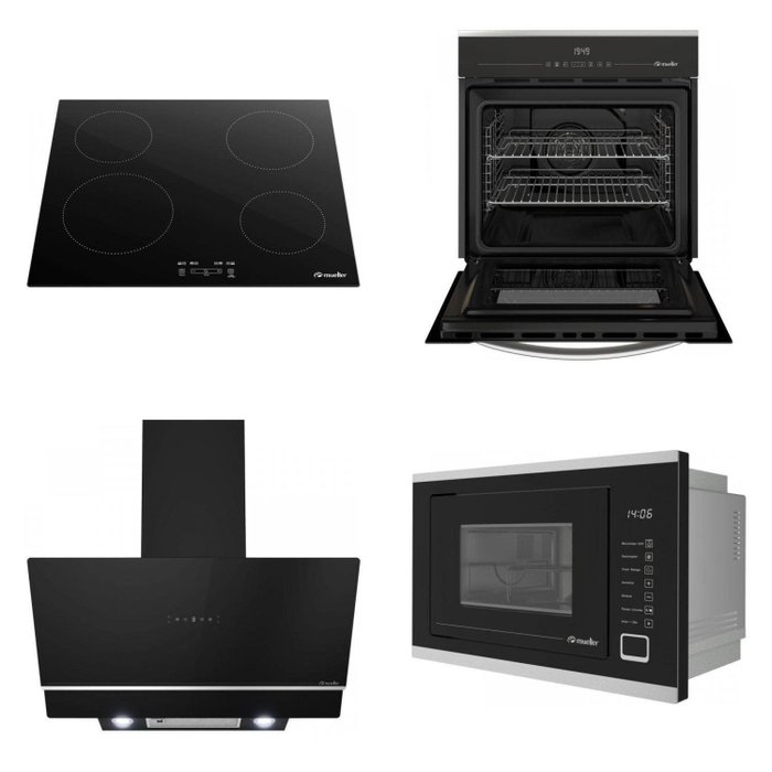 Cooktop Mueller 4 Bocas de Indução com Turbo MCI014BG1 220V; A coifa de parede Mueller em vidro é pura elegância e sofisticação. Em vidro temperado e largura 90cm possui a tecnologia movement de controle de acionamento do painel.Forno Elétrico Digital de Embutir Mueller Preto 68 Litros com Convecção MFE0268G1; O Micro-ondas Mueller de embutir tem capacidade para 25 litros e é perfeito para você descongelar, aquecer e preparar receitas. Possui grill dourador que finaliza as suas receitas, deixando seus pratos muito mais crocantes.