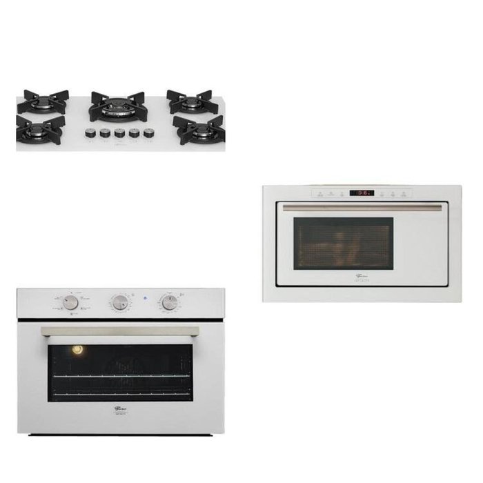 Conjunto de Embutir Fischer com Forno Elétrico 50l com Air Fryer 127v + Micro-ondas 25l com Dourador 127v + Cooktop 5 Bocas Tripla Chama Linha Infinity Branco