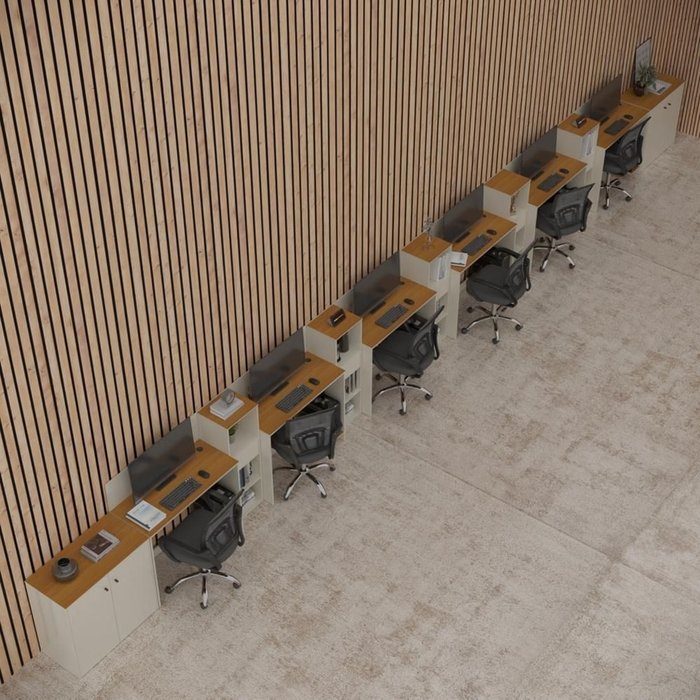 Conjunto de Escritório Smart 5 Livreiro 2 Buffet e 6 Mesas 90cm - Off White e Cedro