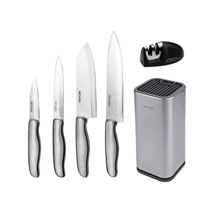 Conjunto de Facas Dolche 6 Peças Aço Inoxidável com Cepo/suporte de Facas & Afiador de Facas