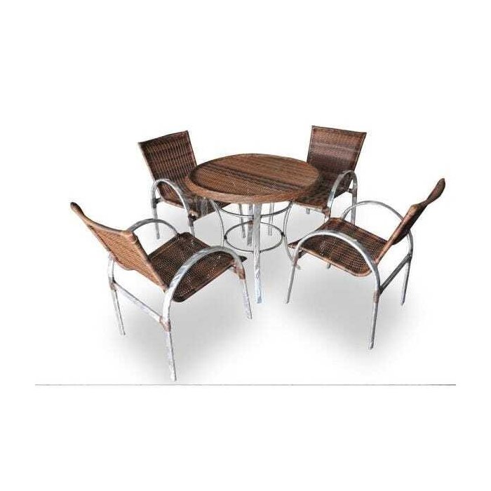 A estrutura de alumínio envolto em fibra sintética garante a qualidade de nossos produtos. Nossas almofadas são revestidas com tecidos Conjunto composto por: 4 cadeiras Dimensões A86 x L58 x C65 cm 1 Mesa redonda Dimensões A76 x D84 cm Por se tratar de confecção artesanal, as dimensões dos produtos podem sofrer variação. Cuidados na manutenção do seu móvel Material de fibra sintética é ideal para utilização em ambientes externos, necessitando apenas de pequenos cuidados para que seu móvel mantenha sua aparência como novo. O ideal é limpar as peças semanalmente, usando uma escova com cerdas macias molhada em uma mistura de água com sabão neutro ou pano úmido. Na sequência, deixe os móveis secarem naturalmente à sombra. Durante a higienização de sintéticos, respeite também o sentido das fibras e nunca aplique força demasiada para não comprometer a superfície do trançado. Nunca utilizar lavadoras de pressão sobre as fibras. Garantia Este móvel tem garantia de quatro (04) meses, se usado em condições normais, contra defeitos de fabricação. Essa garantia não cobre defeitos causados por uso inadequado ou abusivo, falta de cuidados, desbotamento natural dos tecidos ou riscos decorrentes do uso.