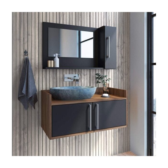 Conjunto de Gabinete e Espelheira Para Banheiro 3 Portas Baldo Estilare Móveis Preto/Madeirado