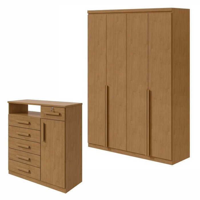 Conjunto de Guarda-roupa Alonzo com Pés e Cômoda da Vinci com Nicho