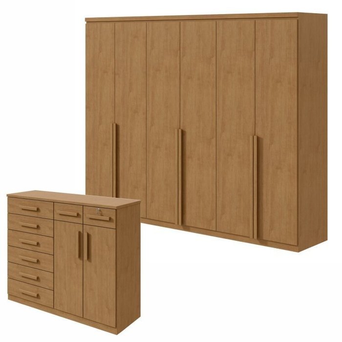 Conjunto de Guarda-roupa Alonzo e Cômoda Toronto Amêndoa Clean