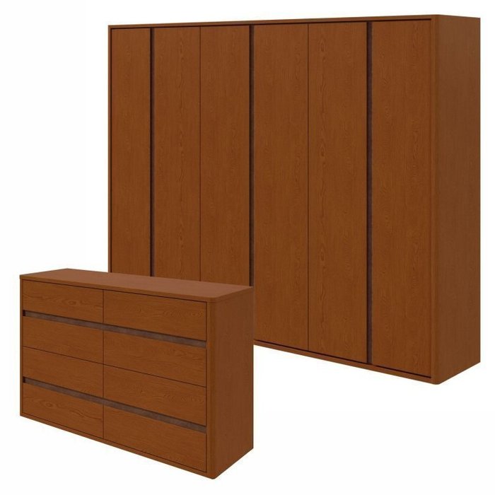 Conjunto de Guarda-roupa Casal Leder 6 Portas e Cômoda 8 Gavetas 150x95cm Leder Frassino