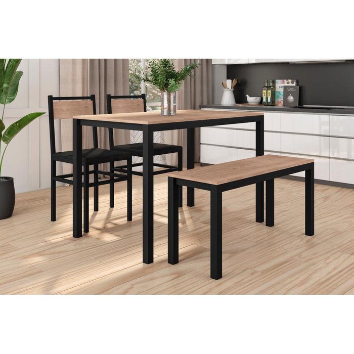 Conjunto de Jantar Curitiba 1,10m c/2 cadeiras e 1 banco Preto