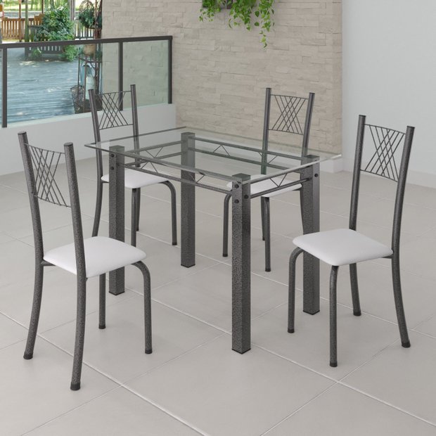 Ver imagem 1 de Conjunto de Jantar Mesa 100x60cm Tampo de Vidro Incolor com 4 Cadeiras Sara Yescasa