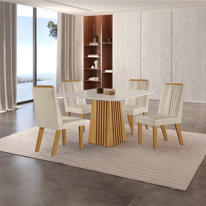 Conjunto de Jantar Mesa Áustria 0,90x0,90 Tampo Mdf/vidro com 4 Cadeiras Florença Yescasa