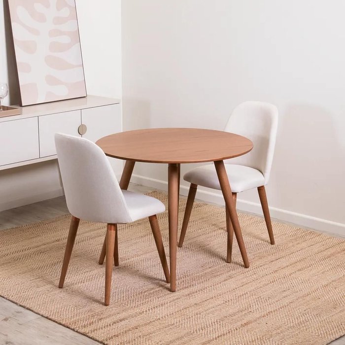 Conjunto de Jantar Mesa Redonda Ollie 2 Cadeiras New Drop - Natural C/ Bege