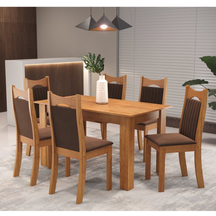 Conjunto de Jantar Mesa Retangular Timbo com 6 Cadeiras Dalas Mel/Bombom