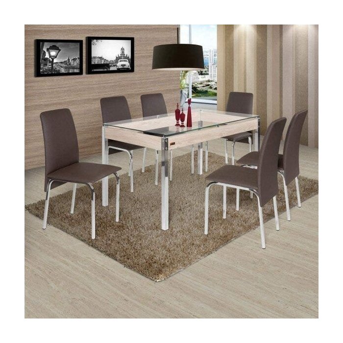 Conjunto de Mesa 6 Cadeiras Barcelona Ciplafe Marrom
