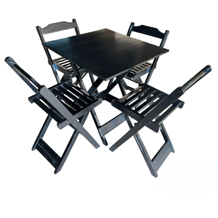 Conjunto de Mesa 70x70 com 4 Cadeiras Dobráveis Premium Madeira Maciça - Reisol Móveis Preto