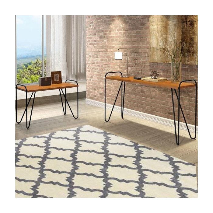Conjunto de mesa Aparador + Mesa lateral pés em metal tubular 100% MDF Genova Carvalho