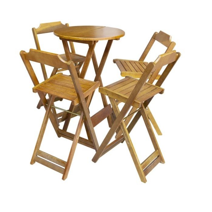 Conjunto de Mesa Bistrô de Madeira com 4 Cadeiras Dobrável Ideal para Bar e Restaurante Mel Mel