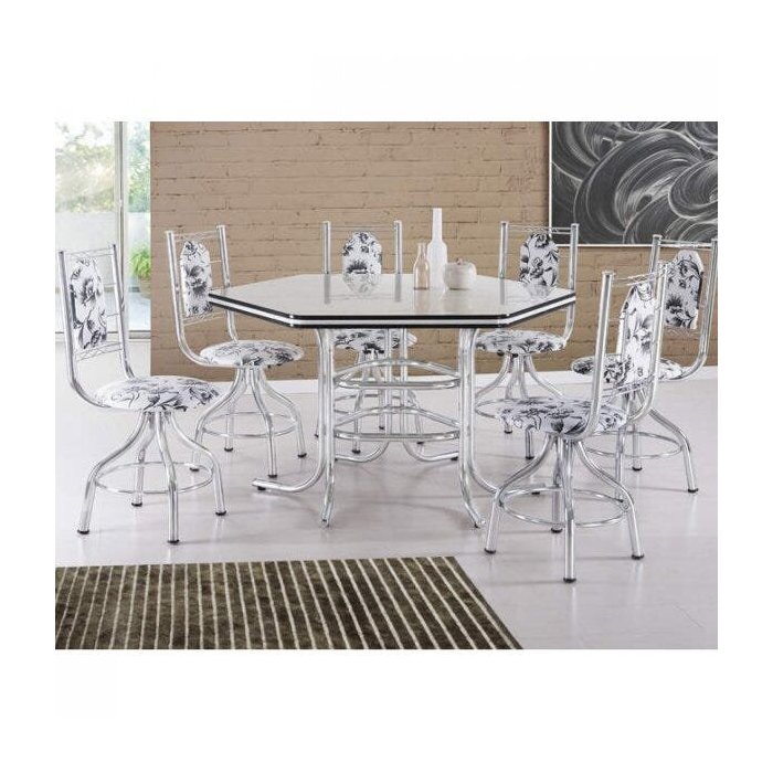Conjunto de Mesa com 6 Cadeiras Giratórias Zeus Novabras cromado