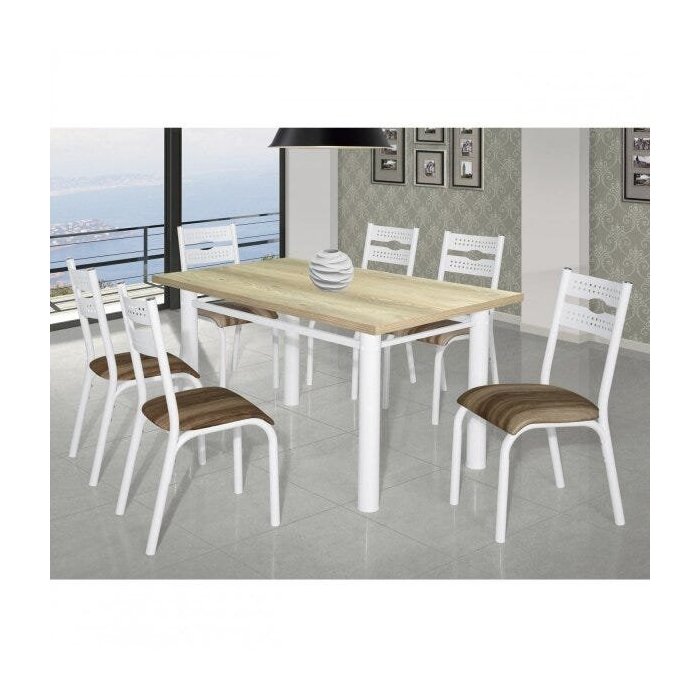 Conjunto de Mesa com 6 Cadeiras Luna Clássica Ciplafe Branco/Cappuccino