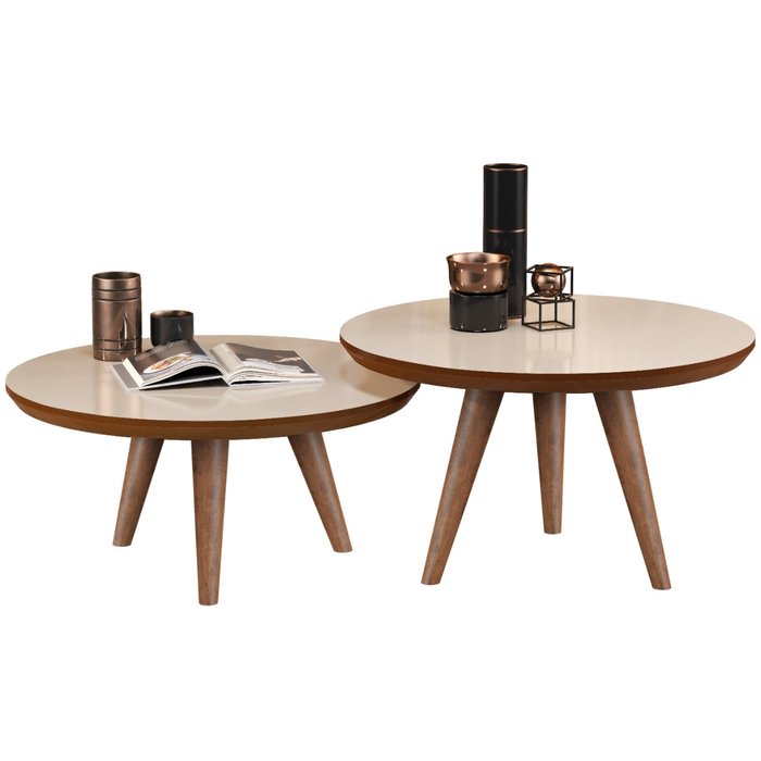 Conjunto De Mesa De Centro Luma Com Bordas Invertidas E Pés Palito - JM3 MÓVEIS