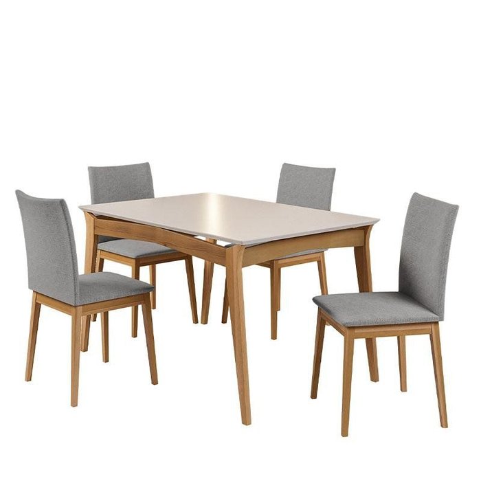 Conjunto de Mesa de Jantar Rubi 136x90cm com 4 Cadeiras Rubi Imbuia/branco Off/neblina