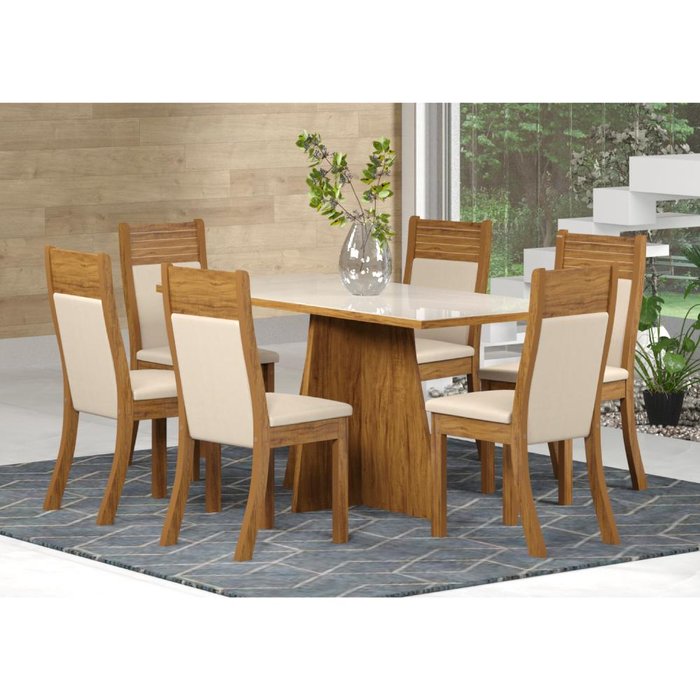 Conjunto de Mesa de Jantar Samy com 6 Cadeiras Roma Imbuia e Off White