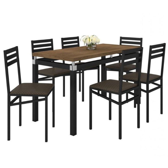 Conjunto de Mesa Suzi 6 Cadeiras Isa Preto Fosco Café - Fabrica 1 Móveis