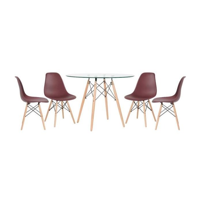 Conjunto de Mesa de Vidro Eames 100cm + 4 Cadeiras Eiffel Dsw Marrom