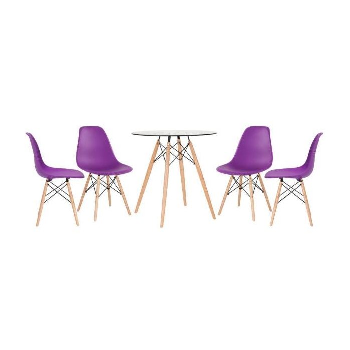 Conjunto de Mesa de Vidro Eames 70cm + 4 Cadeiras Eiffel Dsw Roxo