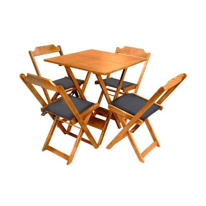 Conjunto de Mesa Dobrável de Madeira 70x70 com 4 Cadeiras Natural Estofado Preto