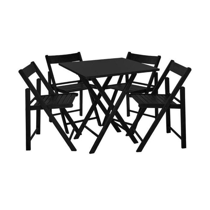 Conjunto de Mesa Dobrável de Madeira com 4 Cadeiras Classic Preto