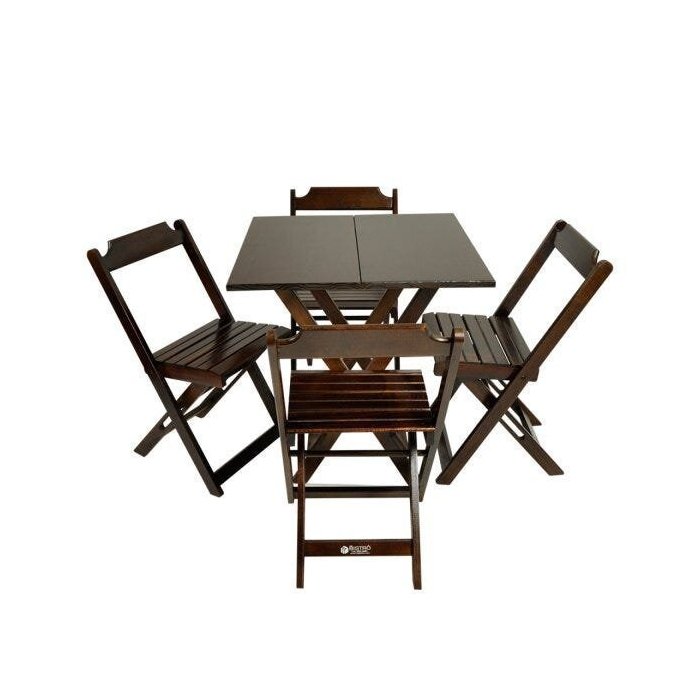 Conjunto de Mesa Dobrável de Madeira com 4 Cadeiras Mega Madeira Imbuia