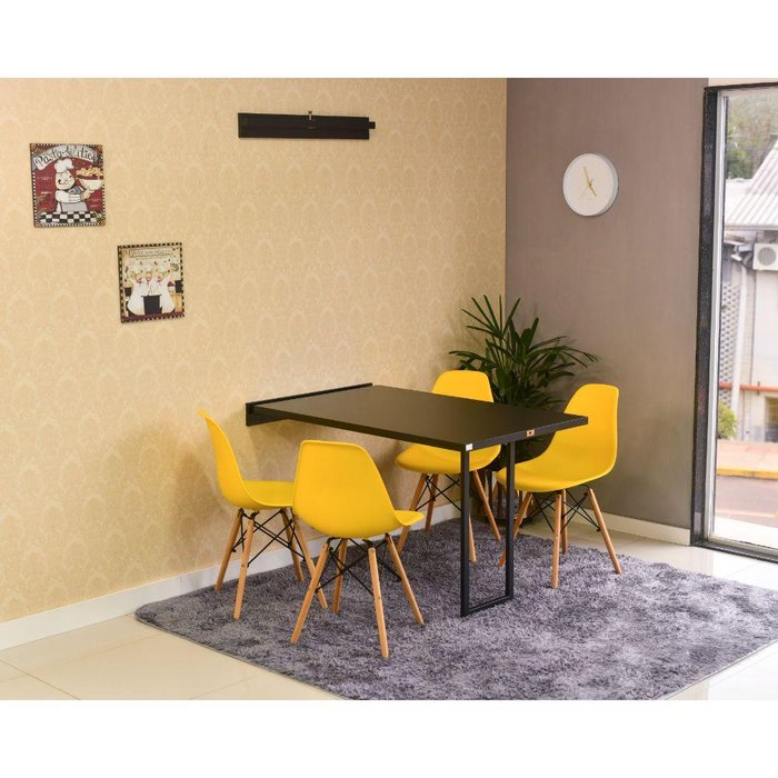 Conjunto de Mesa Dobrável Retrátil 120 x 75 Preta + 4 Cadeiras Eiffel - Amarela